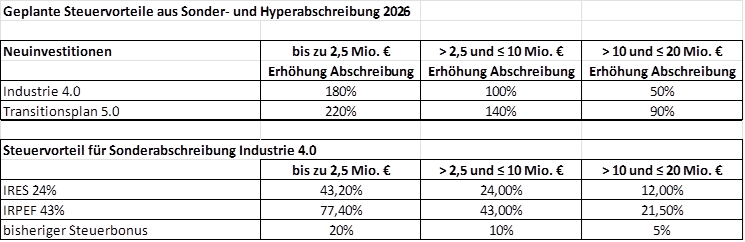 Statt wie bisher über Steuergutschriften, sollen künftig wieder Sonderabschreibungen gewährt werden – und diese sind steuerlich deutlich vorteilhafter, allerdings können sie nur über einen längeren Zeitraum im Rahmen der steuerlichen Abschreibungen beansprucht werden.